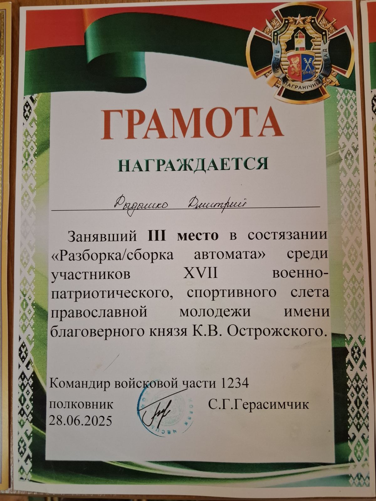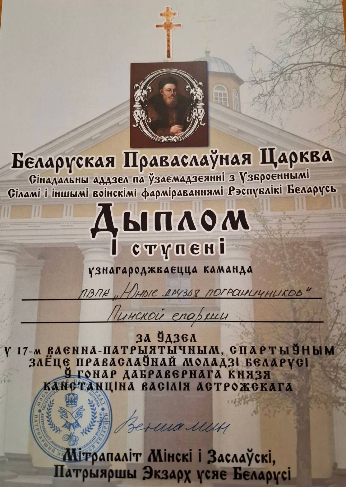 Команда Пинского военно-патриотического клуба "Юные друзья пограничников" заняла первое место по итогам слёта православной молодежи
