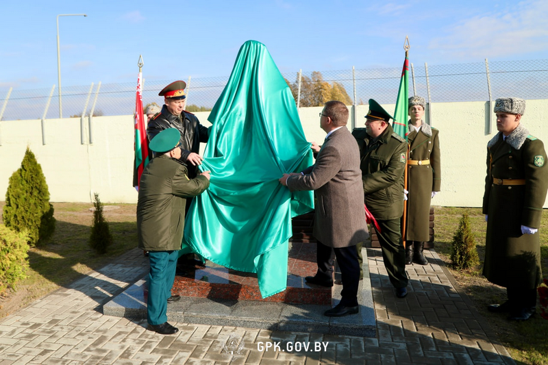 После освящения и благословения установленного бюста на именной заставе архиепископом Пинским и Лунинецким Владыкой Георгием участники мероприятия минутой молчания почтили память пограничников, погибших в первых боях границе. К подножию памятника возложили цветы и венки.
